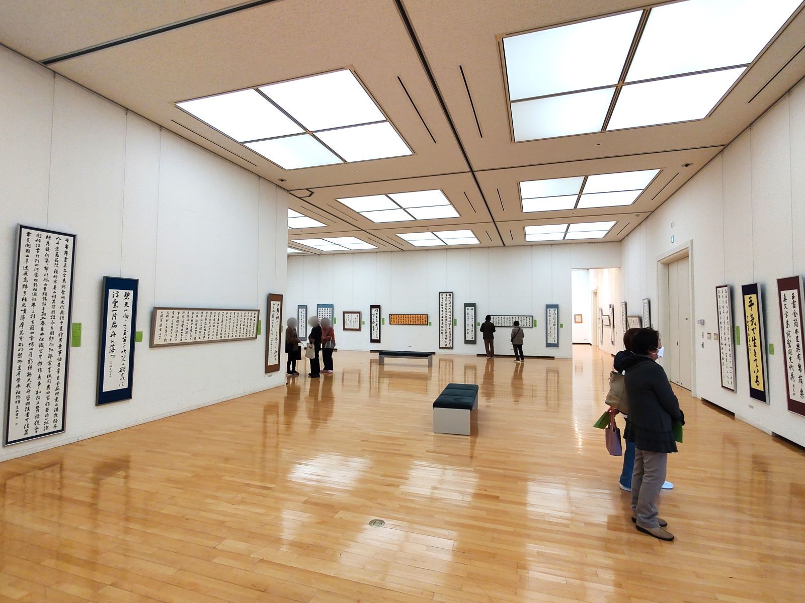 私は午後に市役所で打ち合わせがありましたので、午後3時半過ぎに会場へ到着。作品の搬入や展示はすっかり完了しており、神谷采邑先生をはじめ、3人ほどの会員さんが残っている状態でした。どうやら、取材を申し込んでいた中日新聞の記者さんの到着が遅れているとのこと。本来なら取材が終わって帰っている時間だったようです。