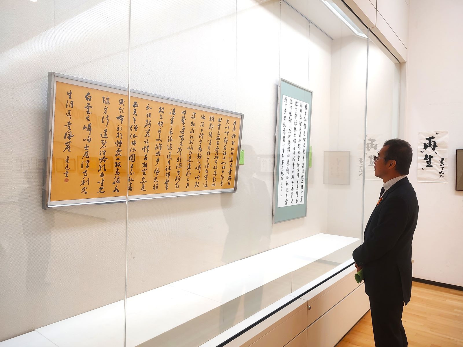 20名ほどの会員さんのテーマ作品は4つで、1つ目は古典をお手本にして書写する「臨書」。2つ目は漢字と仮名が混在する「調和体」。3つ目は「再」または「生」を含めた書。4つ目は、牛乳パックから再生紙を作り「自然なもの」を表す漢字を書いた作品です。