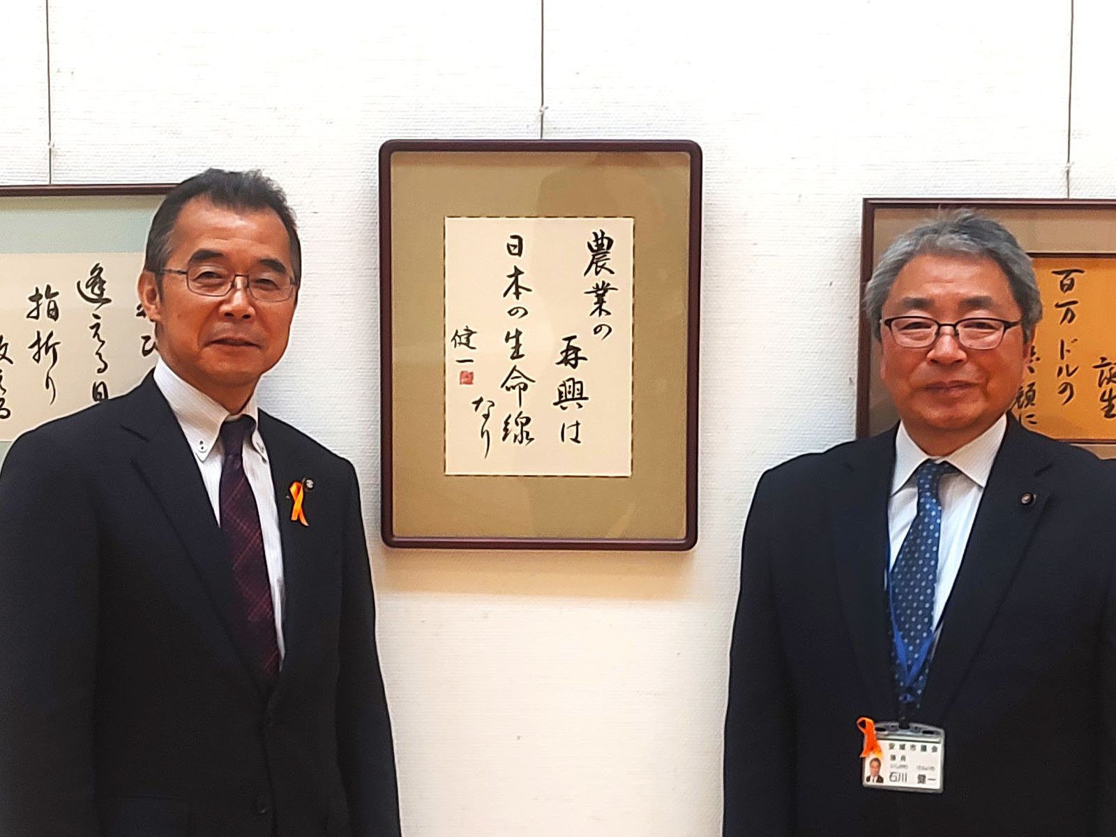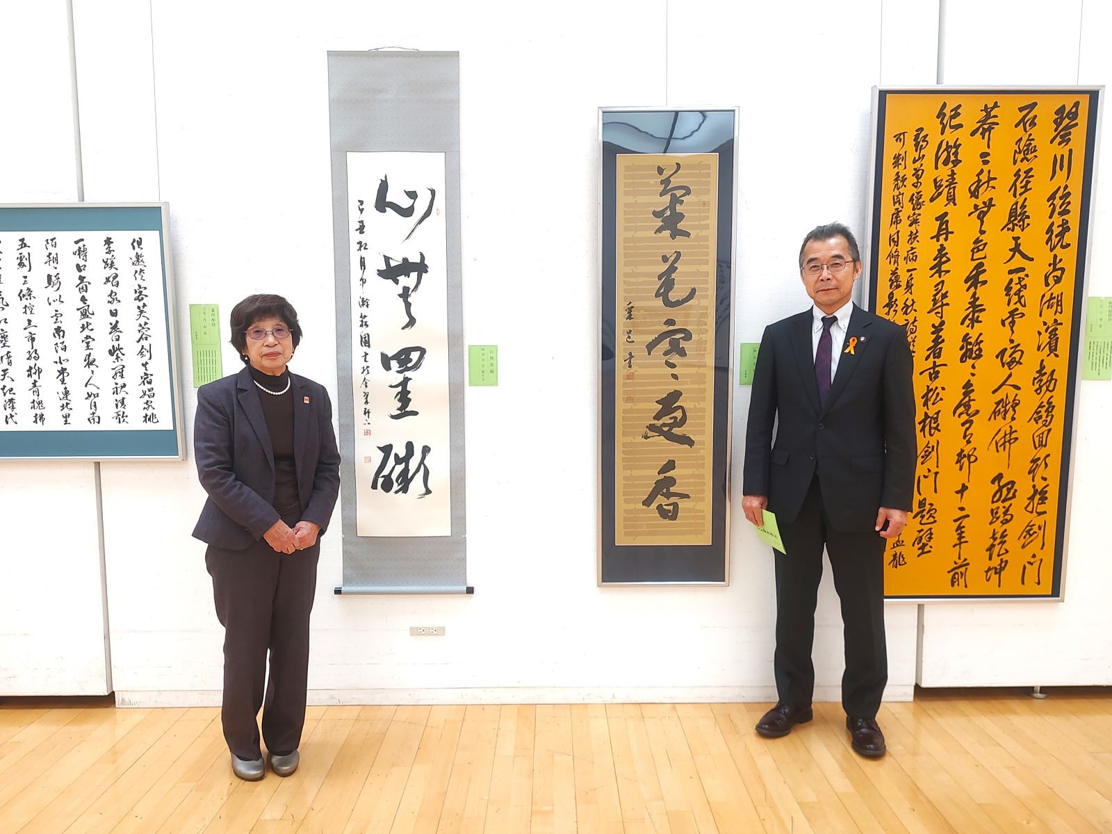 27日より、安城市民ギャラリーで開催中の『芳墨會書作展』。28日午後に、三星元人安城市長にお越しいただきました。この日は午前中、12月議会の開会日を迎えてご多用の中で、誠にありがとうございます。