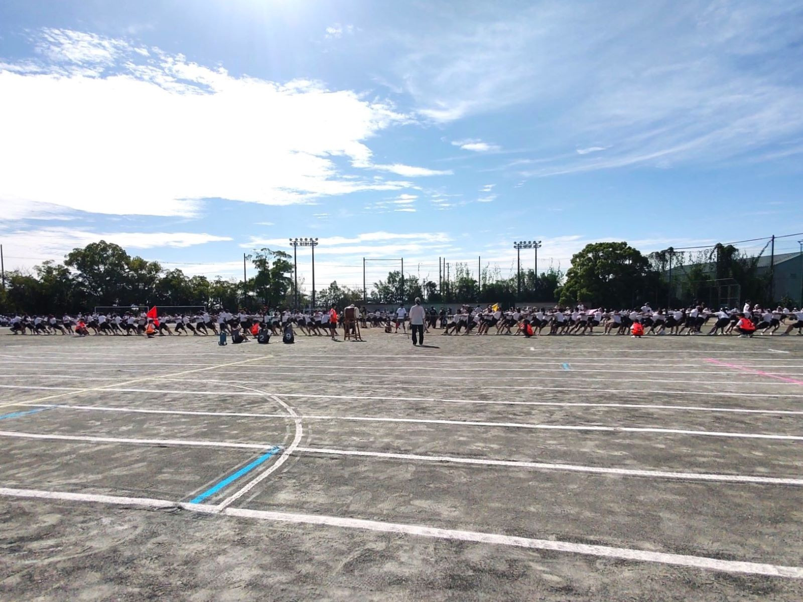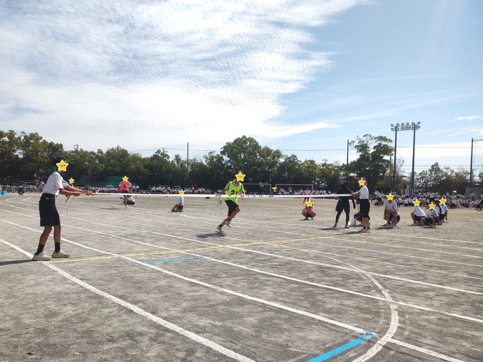 私は午前中まで見させていただきましたが、団対抗綱引きと学級対抗全員リレーではとても盛り上がりました。特に学級全員が走るリレーでは、運動の得意・不得意や男女関係なく、皆が協力してバトンをつなぐ姿がとても印象的でした。ちなみに綱引きは「コツ」があり、そのコツが活かされていませんでしたが、体育大会らしさがありました。