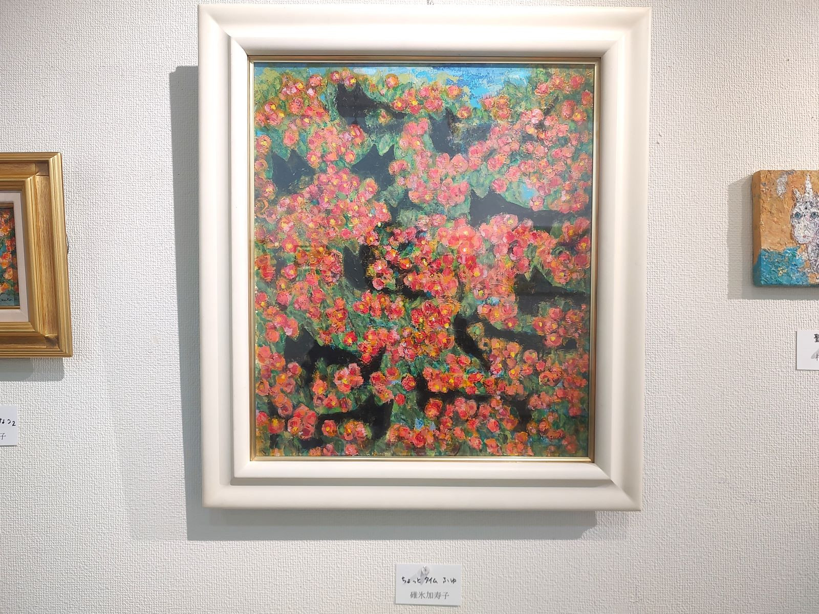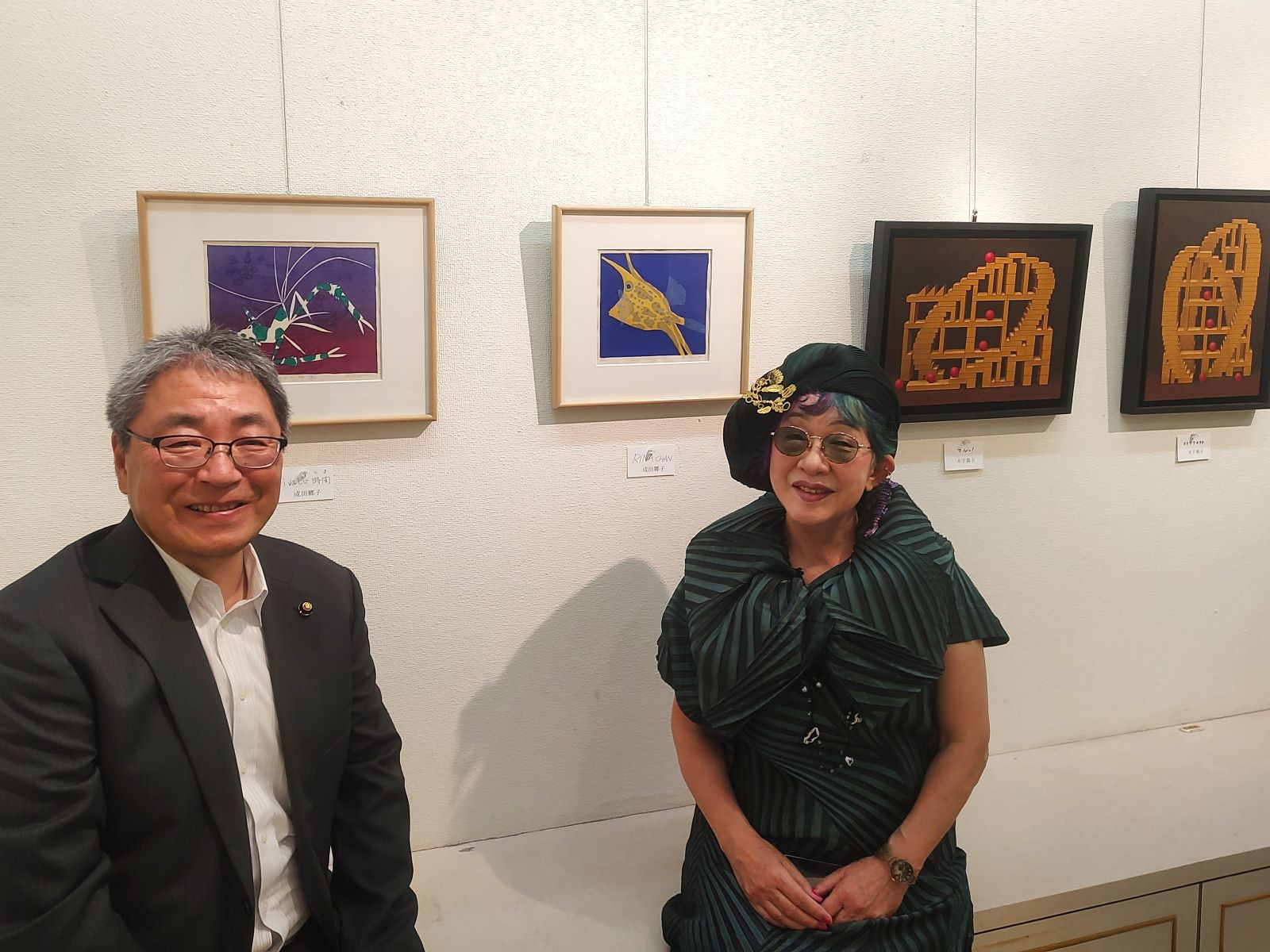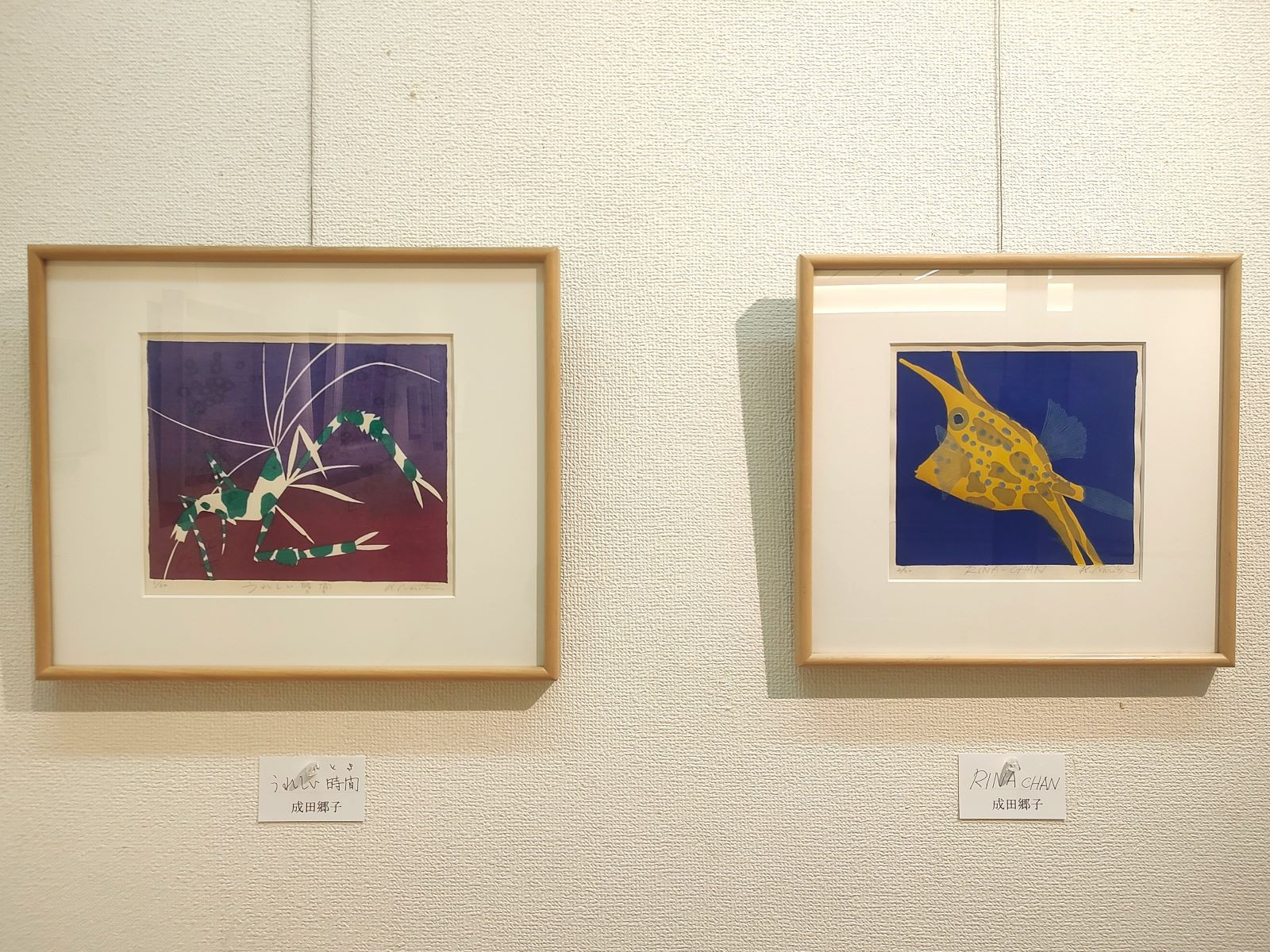 ギャラリーの広さの関係もあり、小さめの作品の展示でしたが、成田先生がモチーフとしている生き物の作品をすぐに見つけることができました。南国の海に生息するカラフルなエビとフグは、生き物好きの私にはたまらない作品です。この地方でご活躍の女流作家の絵画など多くの作品が展示され、しばらく見入っていました。