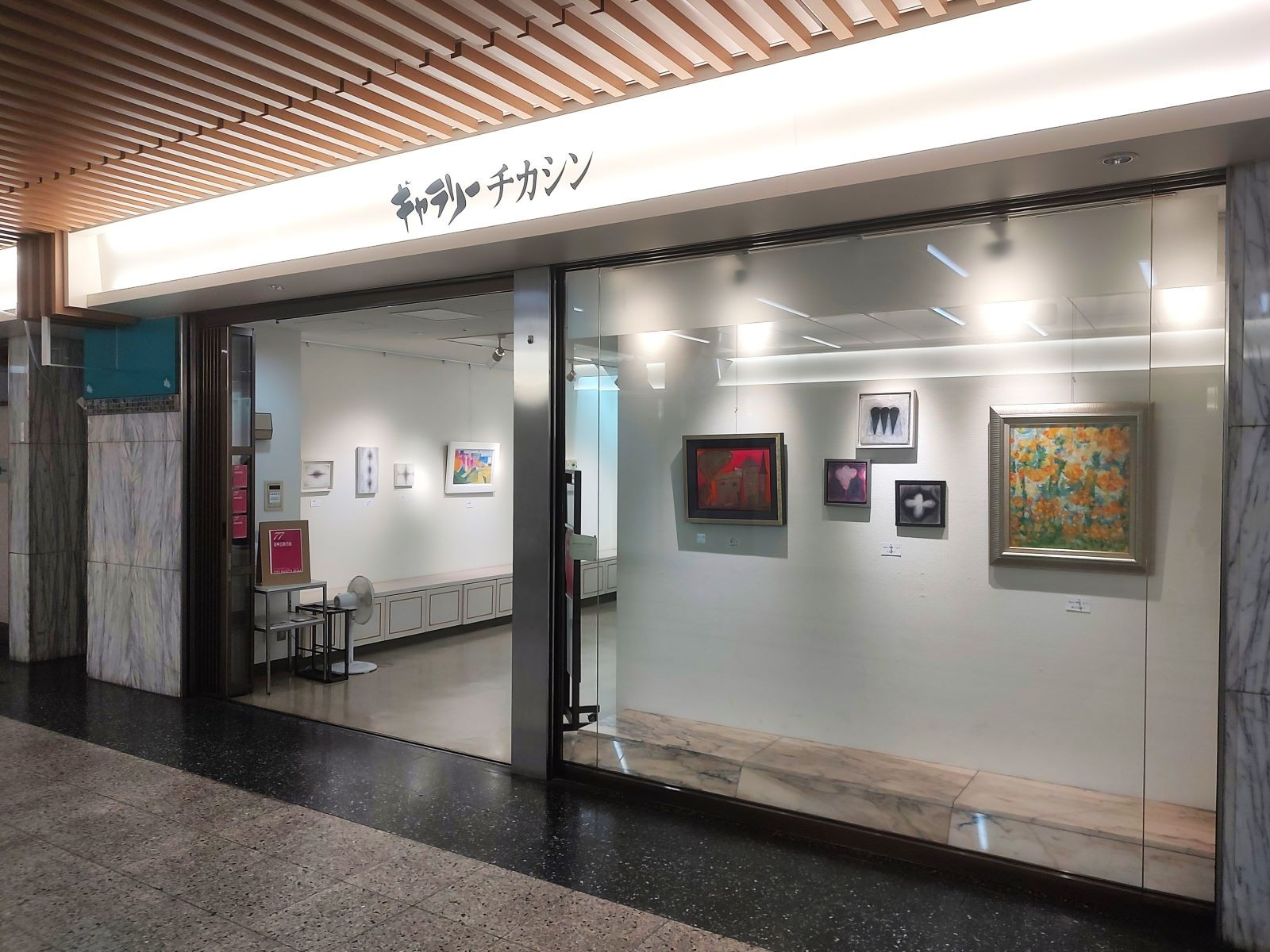 6日午後、名古屋栄の地下街にある「ギャラリー チカシン」で開催中の「第77回 中部女流美術春艸(しゅんそう)会秋季展」へ。今年4月に愛知県美術館ギャラリーで初めてお逢いした、大府市在住で木版画家の成田郷子先生が当番ということで、伺ってきました。