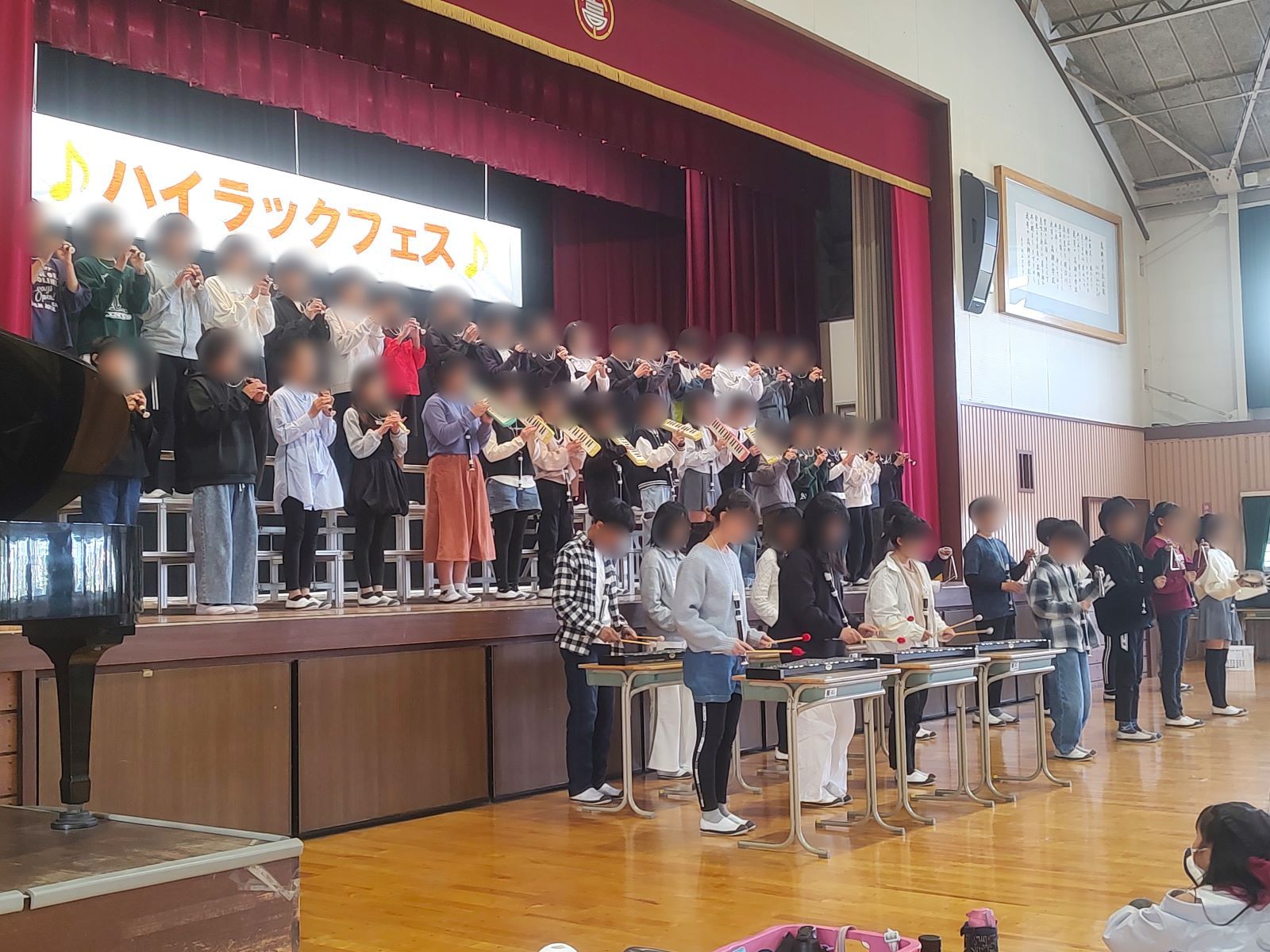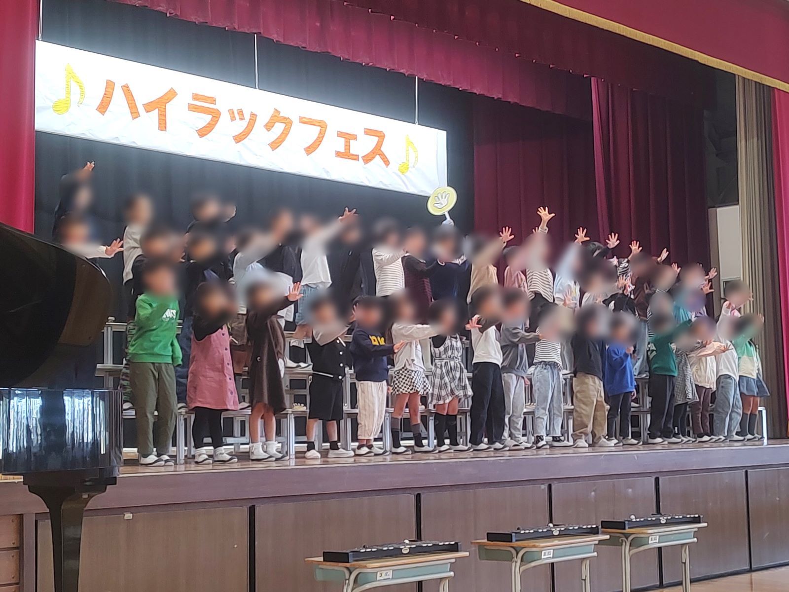 8日午前9時より、地元の高棚小学校のハイラックフェスへ。「ハイ(高)ラック(棚)」という意味で、子ども達が主役の行事にこの名前が付けられて開催されます。先月開催された運動会もハイラックフェスの1つです。この日は体育館での音楽発表会となります。