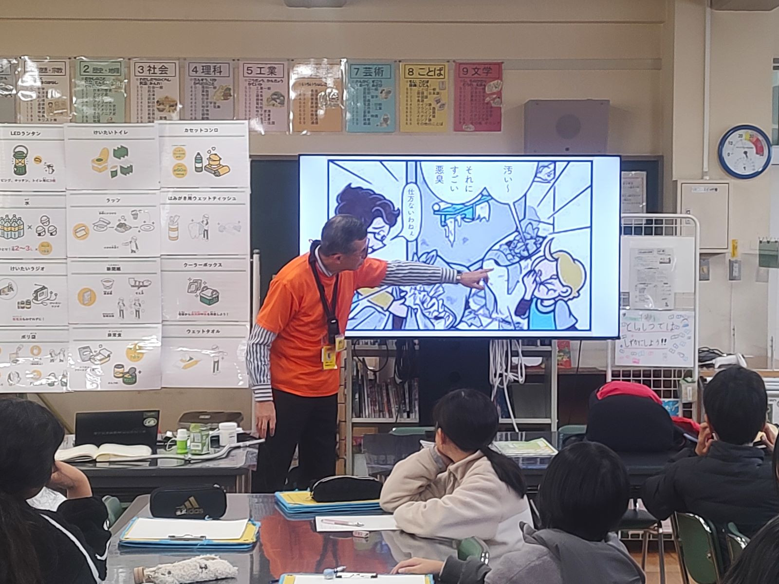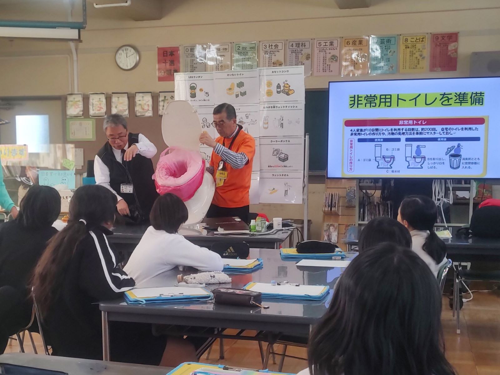 8日午前中、私の地元となる高棚小学校で防災教室を開催しました。9月10日に続いて2回目の防災教室で、今回は防災講座に加えて、断水時の非常用トイレ使用方法について実演をさせていただきました。