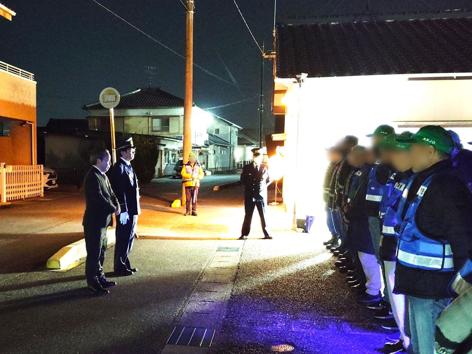 12月28日、29日両日夜間、安城市消防団の全30分団による年末特別警戒が実施されています。28日は、本市の要人が3班に分かれて、各分団を巡視しながらの年末恒例の激励が行われました。