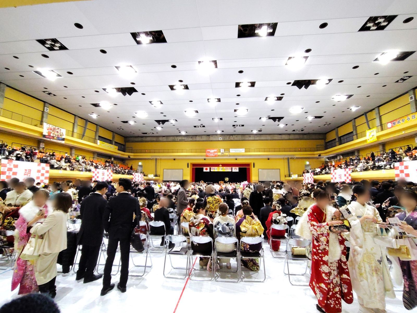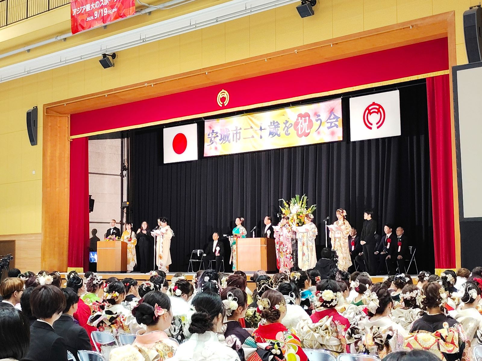 11日午後1時30分より、東祥アリーナ安城(安城市体育館)1階アリーナにおいて、令和8年安城市二十歳を祝う会が開催されました。市内で新しく二十歳を迎えたのは、男性1,054人、女性946人の合計2,000人とのことです。振り袖姿がとても華やかな会場となりました。
