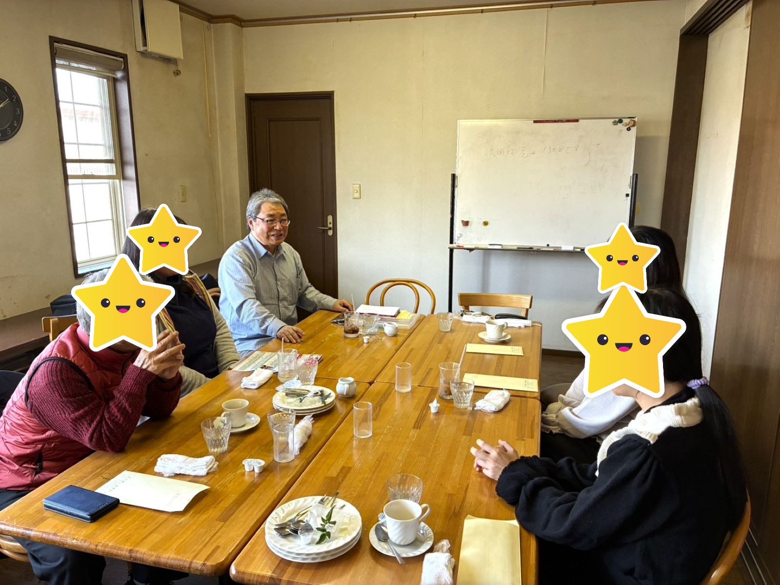 18日午後、喫茶店の1室をお借りして、お茶をしながらの座談会を開催しました。過去に何度も開催しており、新たに1人が加わっていただきました。