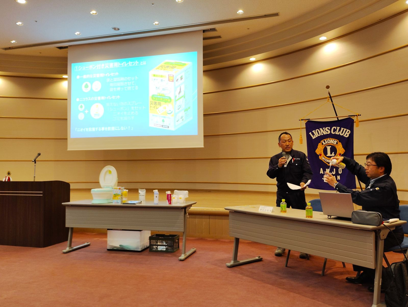 18日午後、所属する安城ライオンズクラブのゲストスピーカーとして、市内に本社を置く『ワコー電器(株)』の榊原社長と右田さんをお招きして、同社の製品『シューポン』の誕生から効用を解説いただきました。