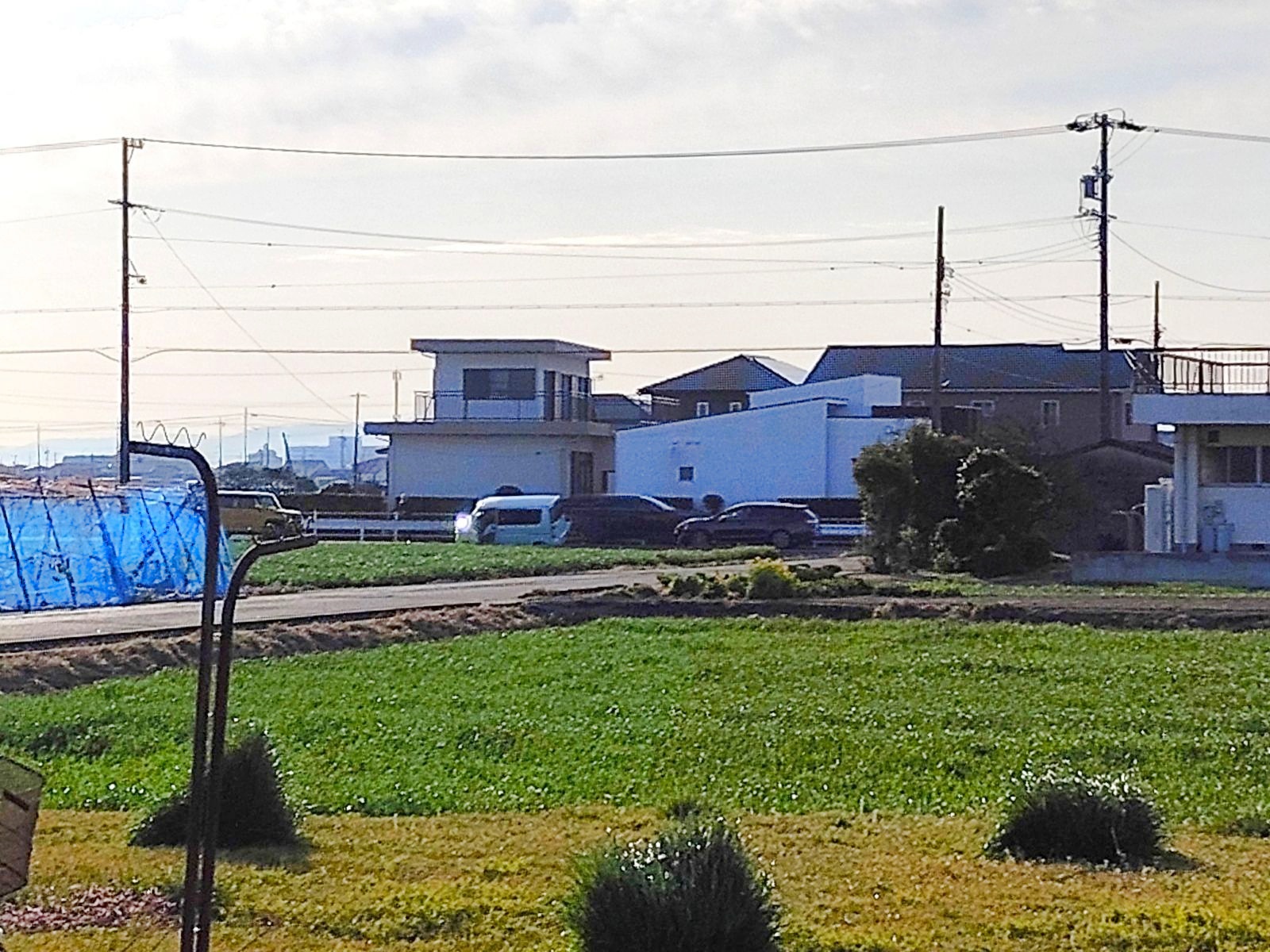今朝、子どもたちの登校の見守り最中、少し離れたところで車の大きな衝突音が。私が立っている交差点からは視認できなかったので、少し移動して確認してみると、白い車が田んぼに落ちかけていました。