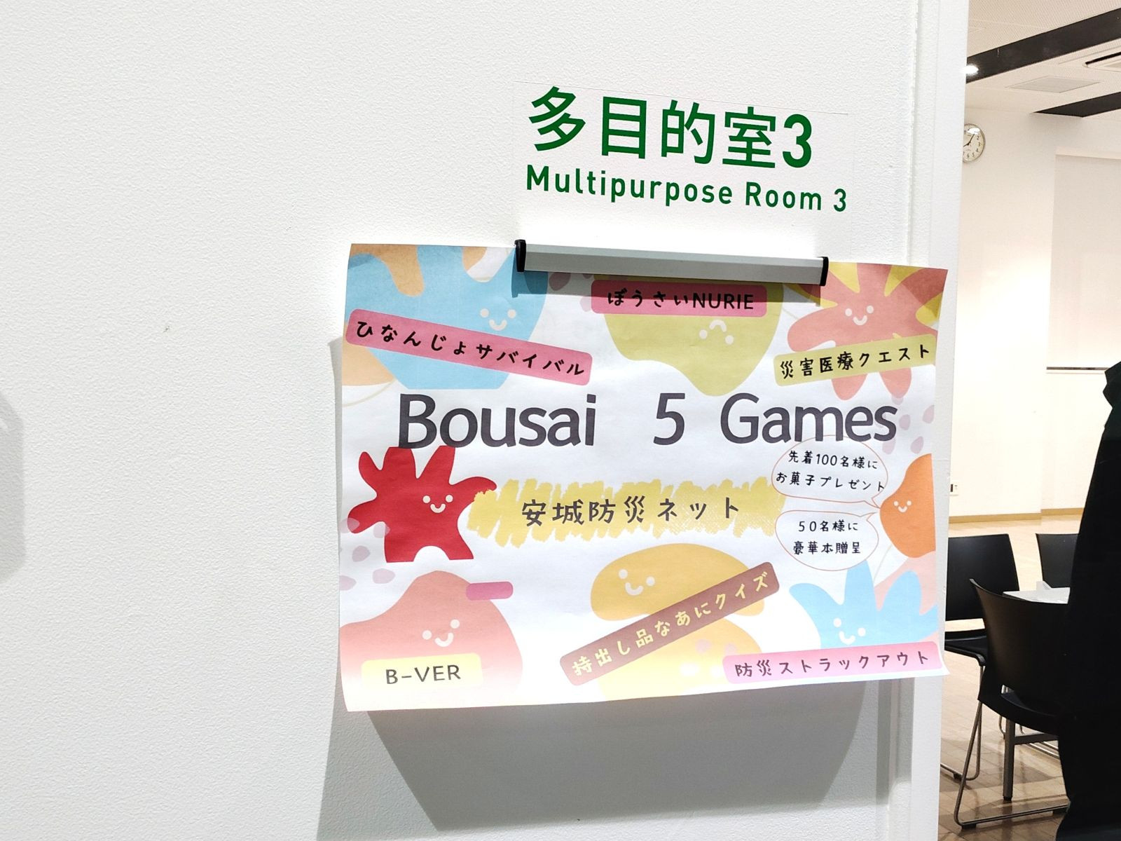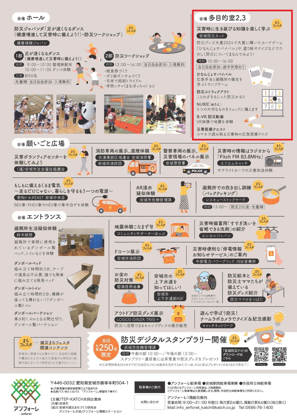 当日は、私もアンフォーレ本館1階の多目的室の安城防災ネット会場に、午前10時から午後4時までいる予定です。皆さまもアンフォーレにお越しいただき、さまざまな防災・減災に役立つ体験をされてはいかがでしょうか。