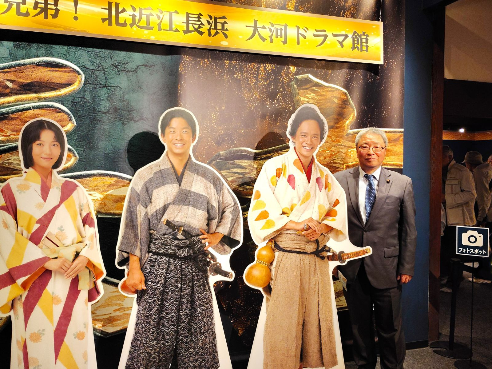 昼食後は長浜市の黒壁スクエアへ。ここは、郊外に出店した大型店舗などの影響で廃れ始めていたところ、かつての黒壁洋館の銀行の建物を活用して、官民一体で「黒壁の町づくり」に挑戦し、見事に街を再生。現在は200万人近くを数える観光客を呼ぶことに成功しています。そして、何といっても大河ドラマ「豊臣兄弟」ゆかりの地とあって、長浜別院大通寺に設けられた「大河ドラマ館」では、番組の衣装・小道具の展示、特集パネルが展示され、大勢の方々が訪れていました。