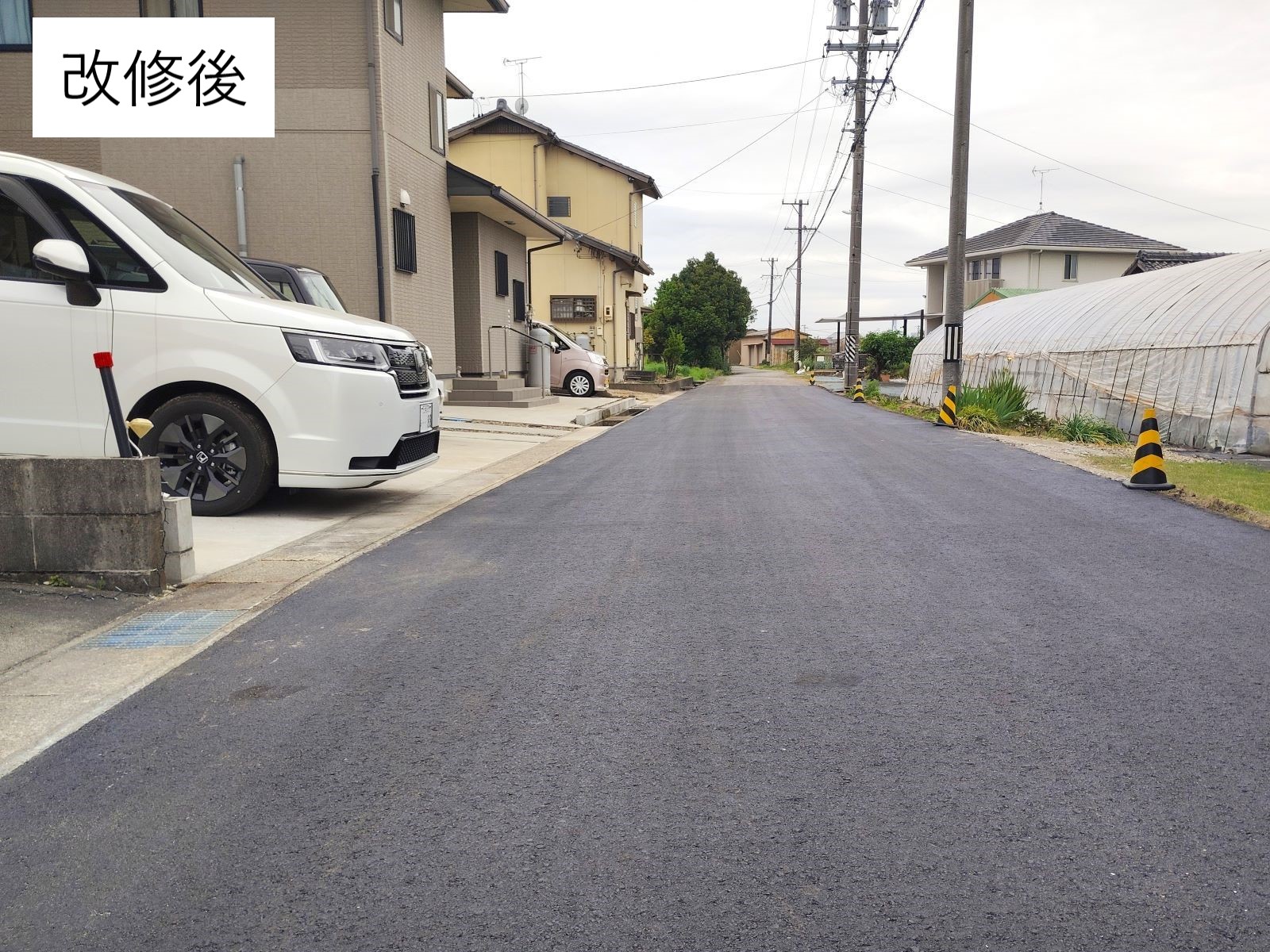 そもそも側溝の高さで敷地の出入り高さが決定してきますので、明らかに市道の横断面形状に問題があることから、市の維持管理課と調整して、早速、新年度の改修対象として工事が着工され、このたび改修工事が完了しました。