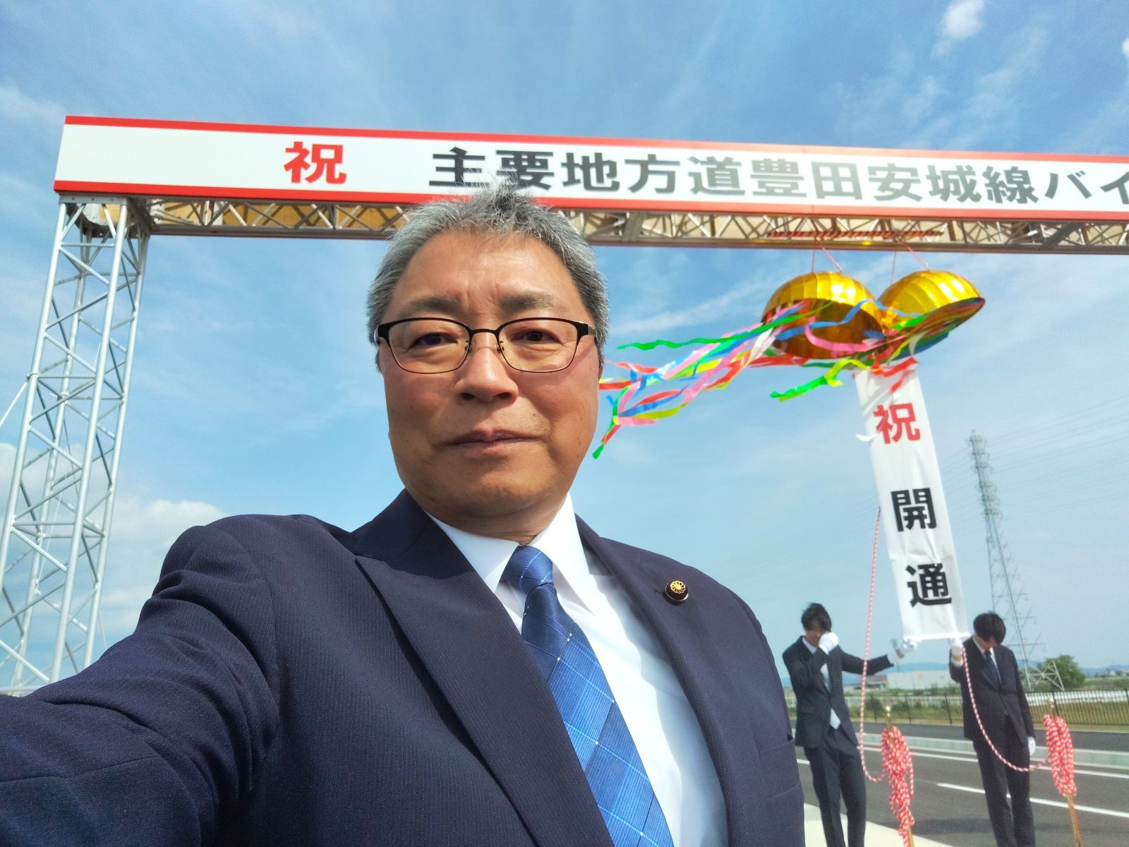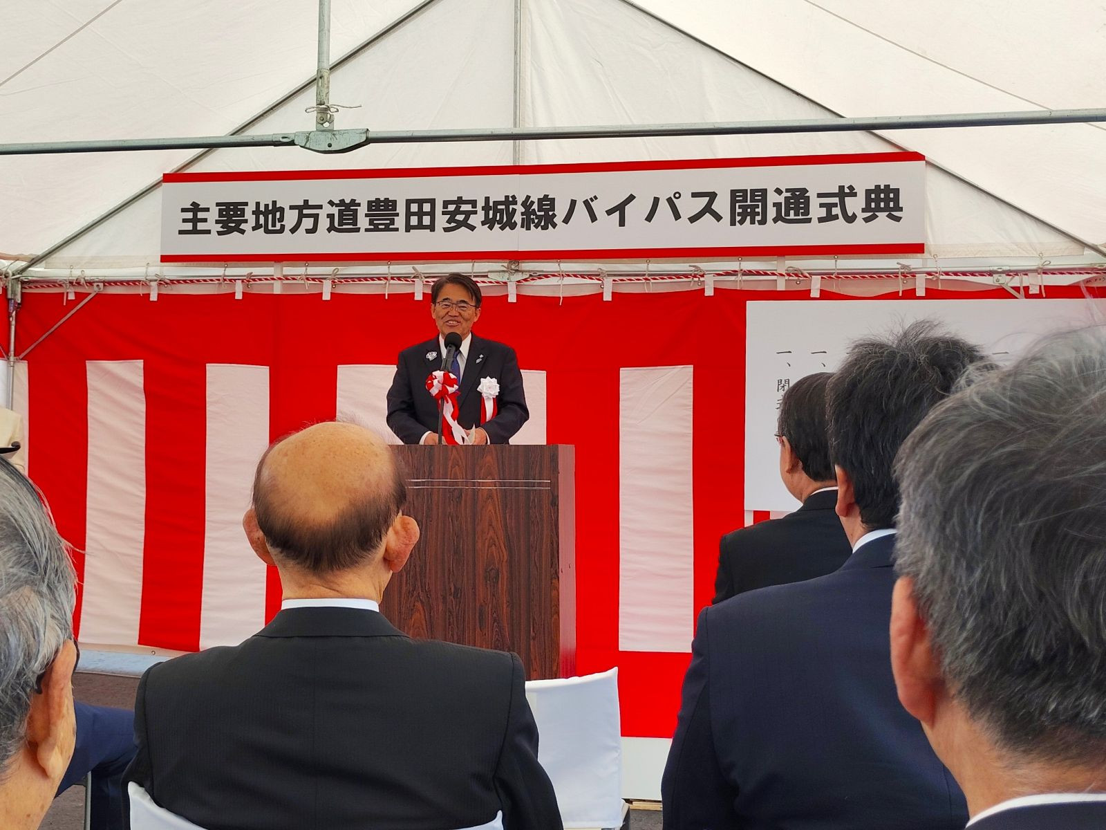 本バイパスは、1981年設立の『豊田安城線建設期成同盟会(沓名俊裕会長)』により、地道な建設・整備活動が行われてきました。私はこの路線と接続する岡崎半田線のある高棚町出身であることから、町内会長時代より、同建設期成同盟会に所属しており、今回の開通を大変嬉しく感じてます。この地域の産業・経済の発展に大きく寄与するものと期待しています。