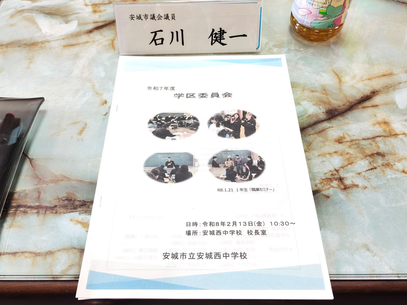 13日午前10時30分より、安城西中学校区の町内会長と市議の出席のもと、学区委員会が開催され、令和7年度の振り返りが行われました。