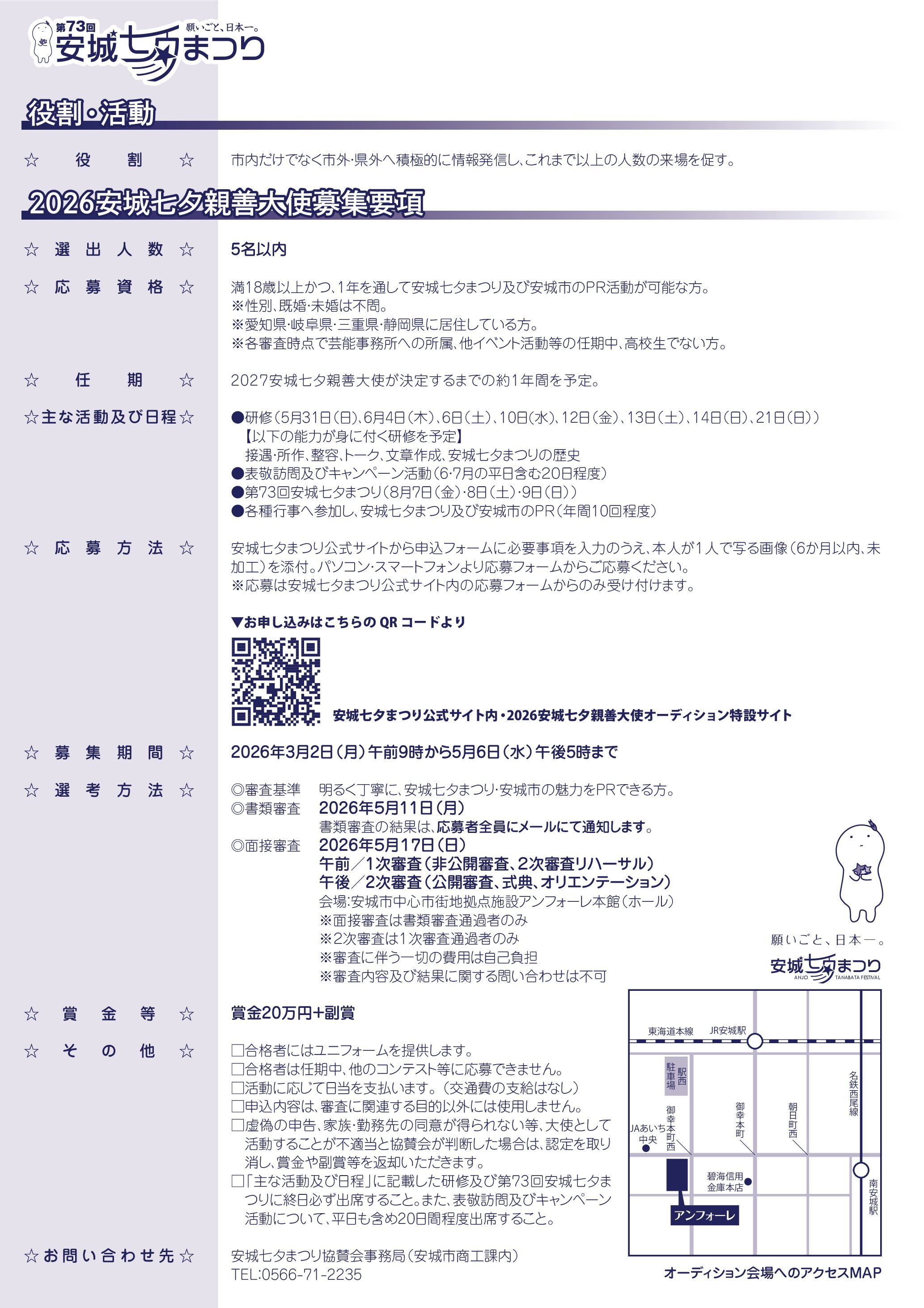 安城市 第73回安城七夕まつり 安城七夕親善大使募集開始
