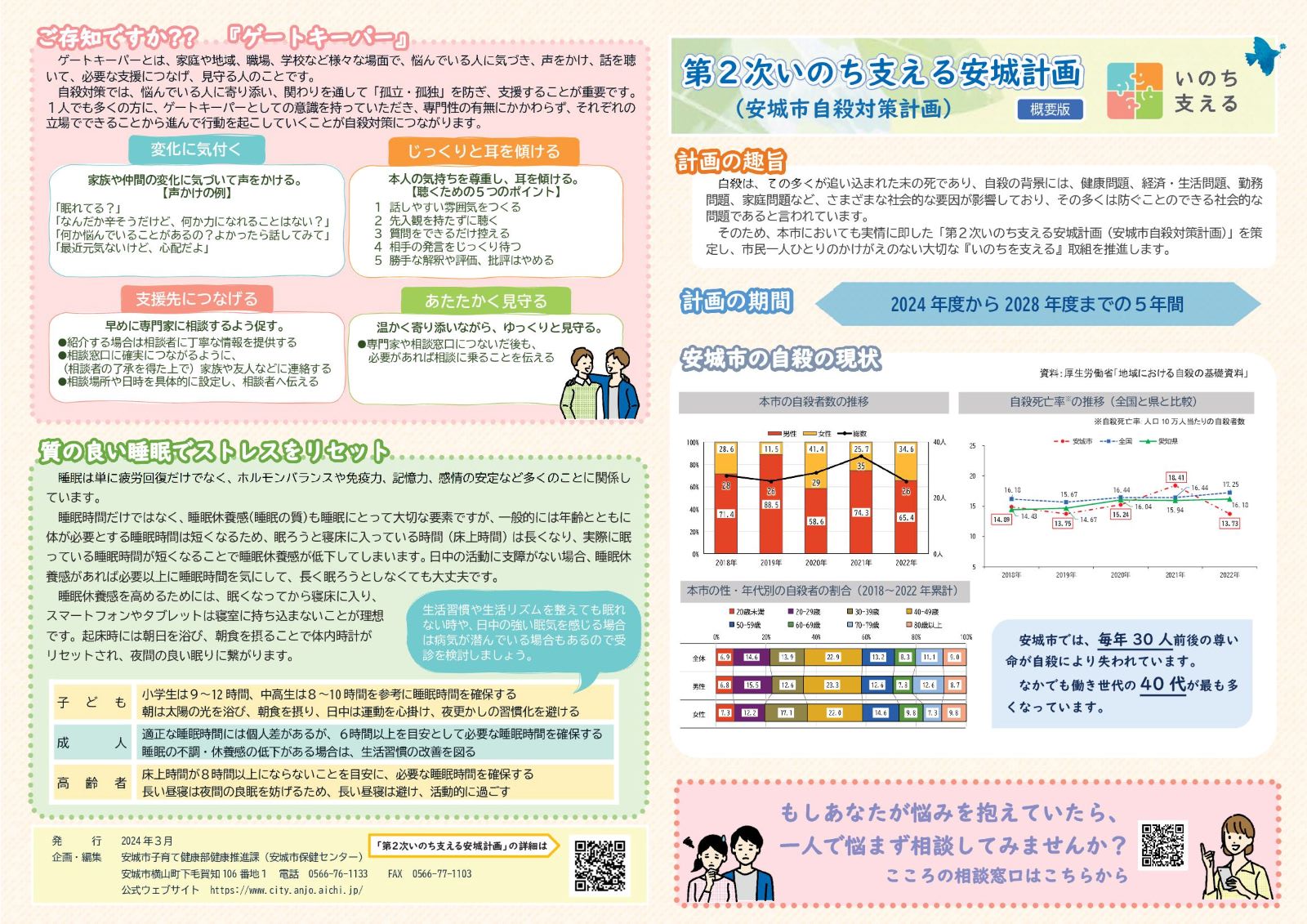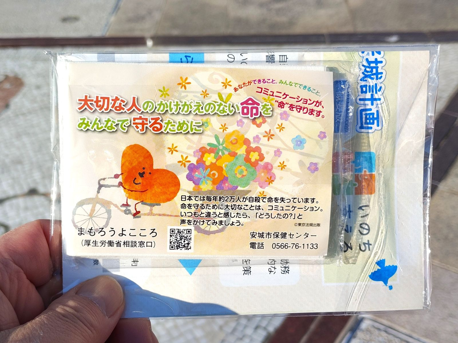新年度を控えて、環境の変化などが重なる3月に自殺者が増える傾向があるといわれています。駅を利用される通勤、通学の方々に、案内とティッシュを配布して啓発を行いましたが、市民が生きがいや希望を持って暮らすことができる、そんな安城市を目指して行きたいものです。